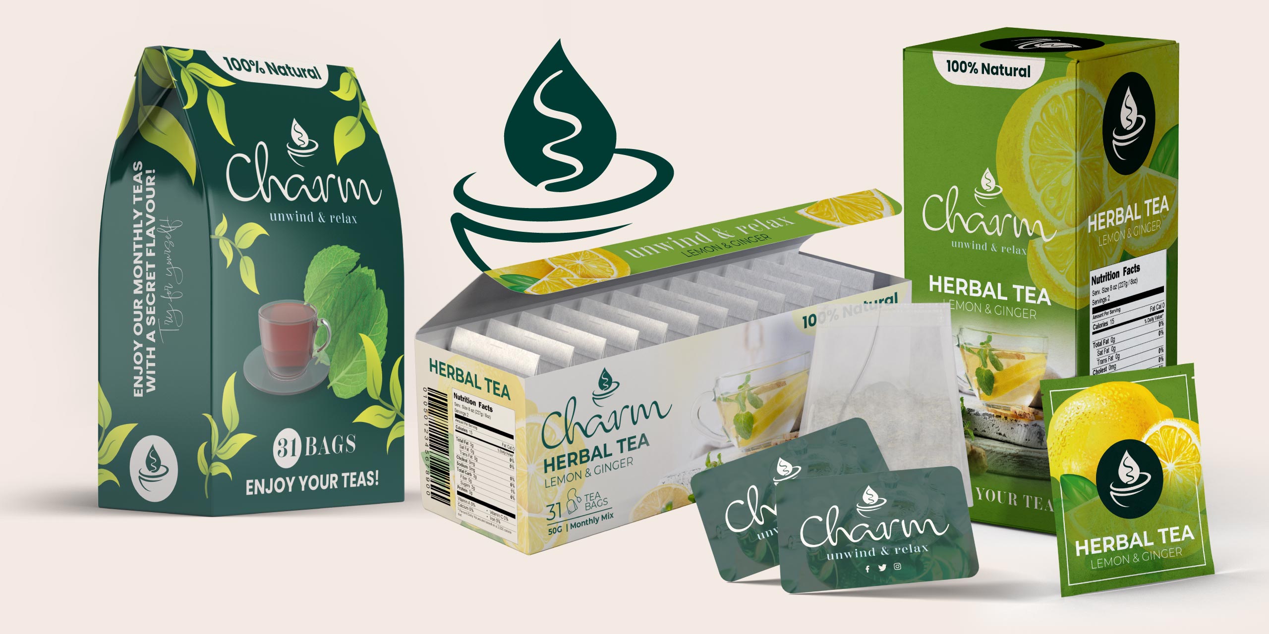 Charm believes there’s more to tea than just tea! They know that tea is a way of relaxing and unwinding, which is why they’ve created a monthly subscription box for all the tea lovers out there. The box can be customized to fit the needs of their customers, and each month the customer gets a secret flavour to try out. Charm wants their brand to feel relaxing, minimal and unique.